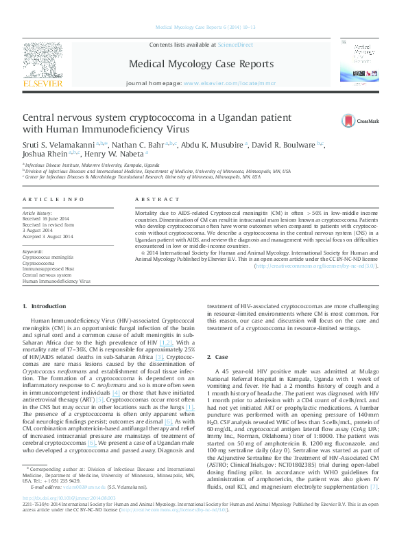 (PDF) Central nervous system cryptococcoma in a Ugandan patient with ...