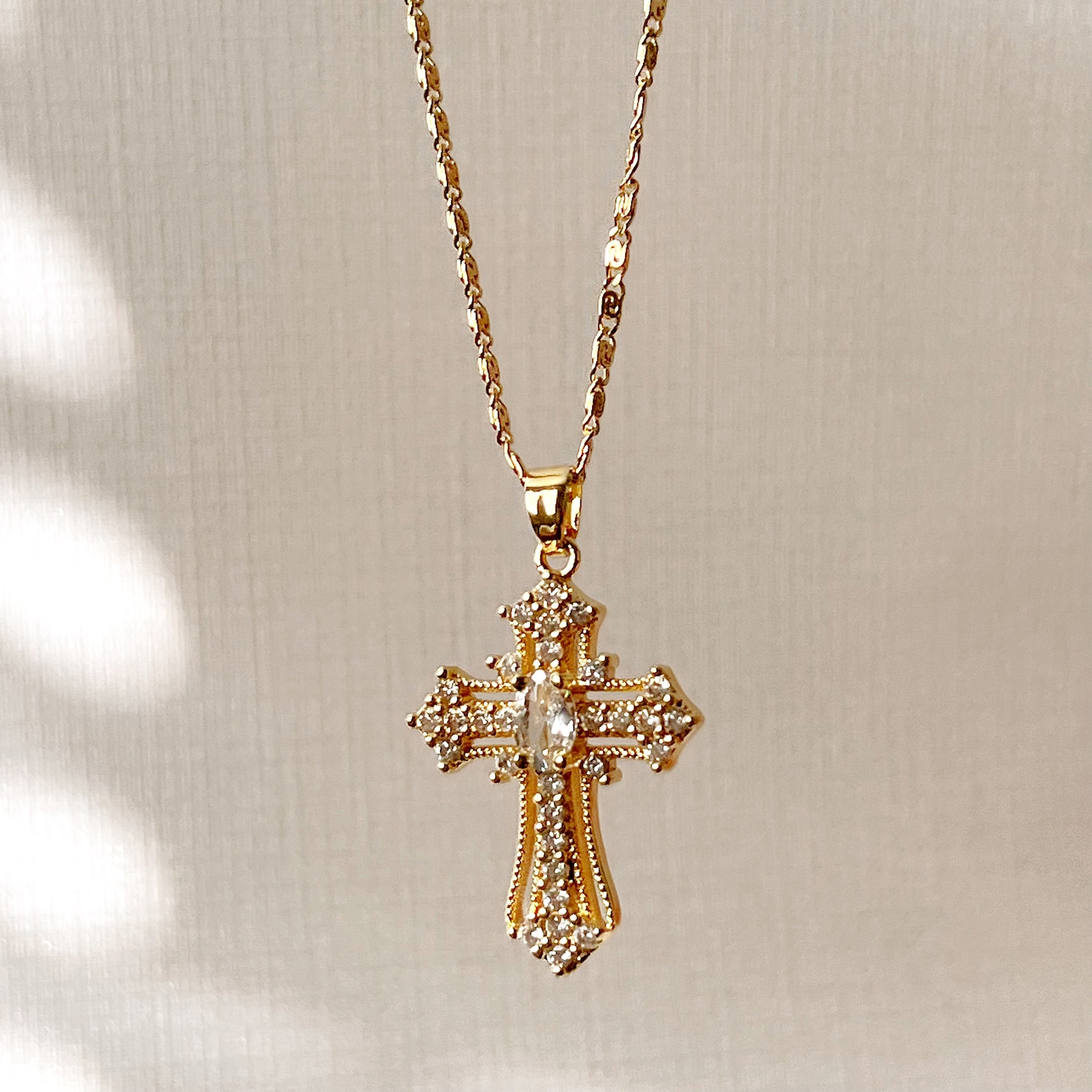 18K Gold Filled Cross Necklace, Collar De Cruz, Cadena De Cruz, Cadena ...