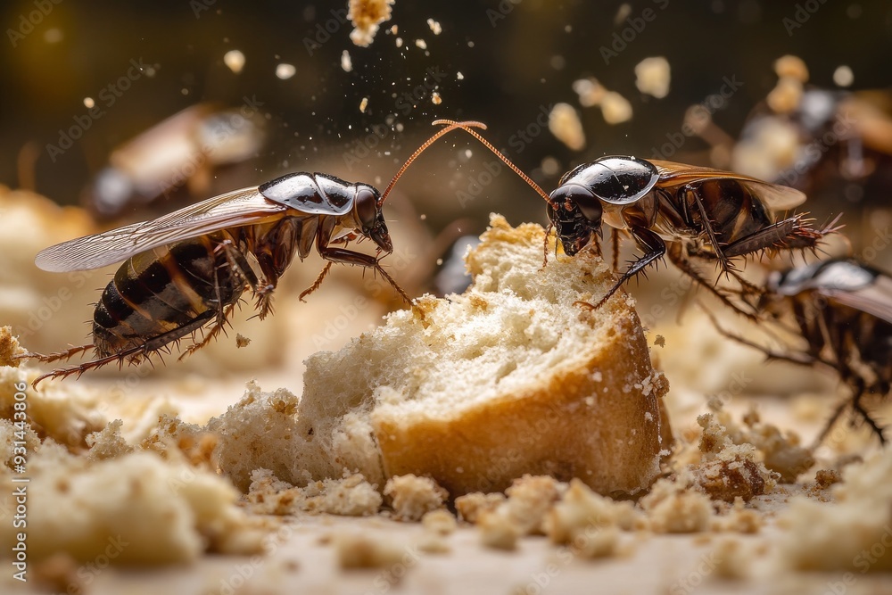 Cockroaches eating bread with crumbs of broken cake, cockroaches ...
