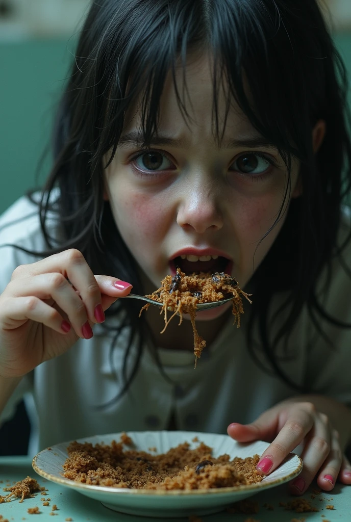 A crying girl eating cockroaches in a careless psychiatrist. The girl ...
