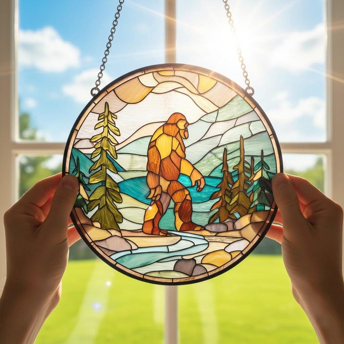 BLESSING DECOR Bigfoot Glass Suncatcher, Sasquatch Window Hanging ...
