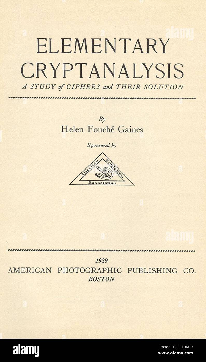 Cryptanalysis;: A study of ciphers and their solution: Gaines, Helen ...