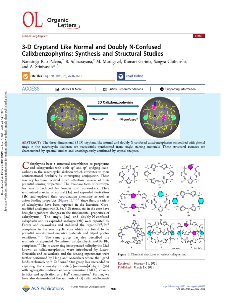 3 D Cryptand Like Normal and Doubly N Confused Calixbenzophyrins PDF ...