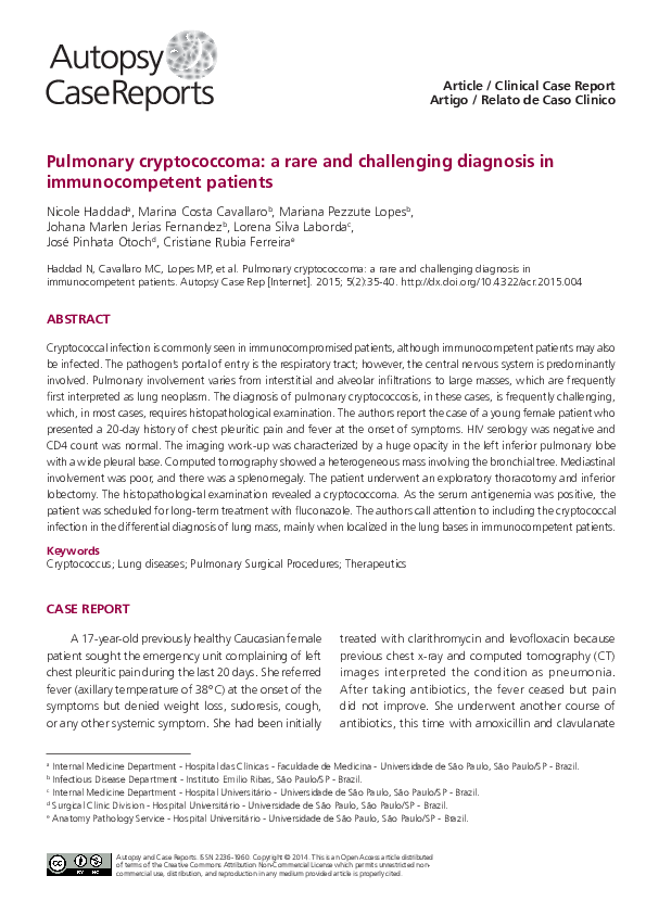 (PDF) Pulmonary Cryptococcoma in an immunocompetent patient with ...