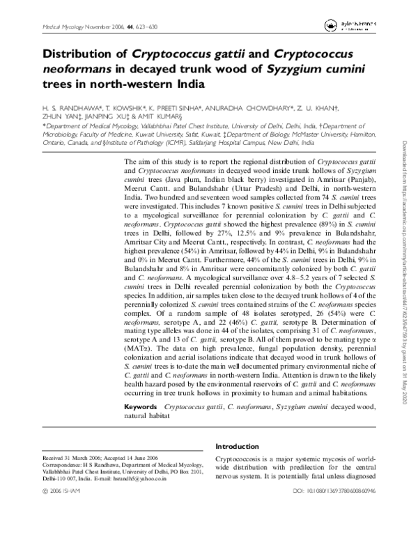 (PDF) Distribution of Cryptococcus gattii and Cryptococcus neoformans ...