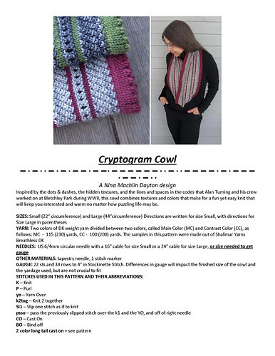 Ravelry: Cryptogram Cowl pattern by Nina Machlin Dayton