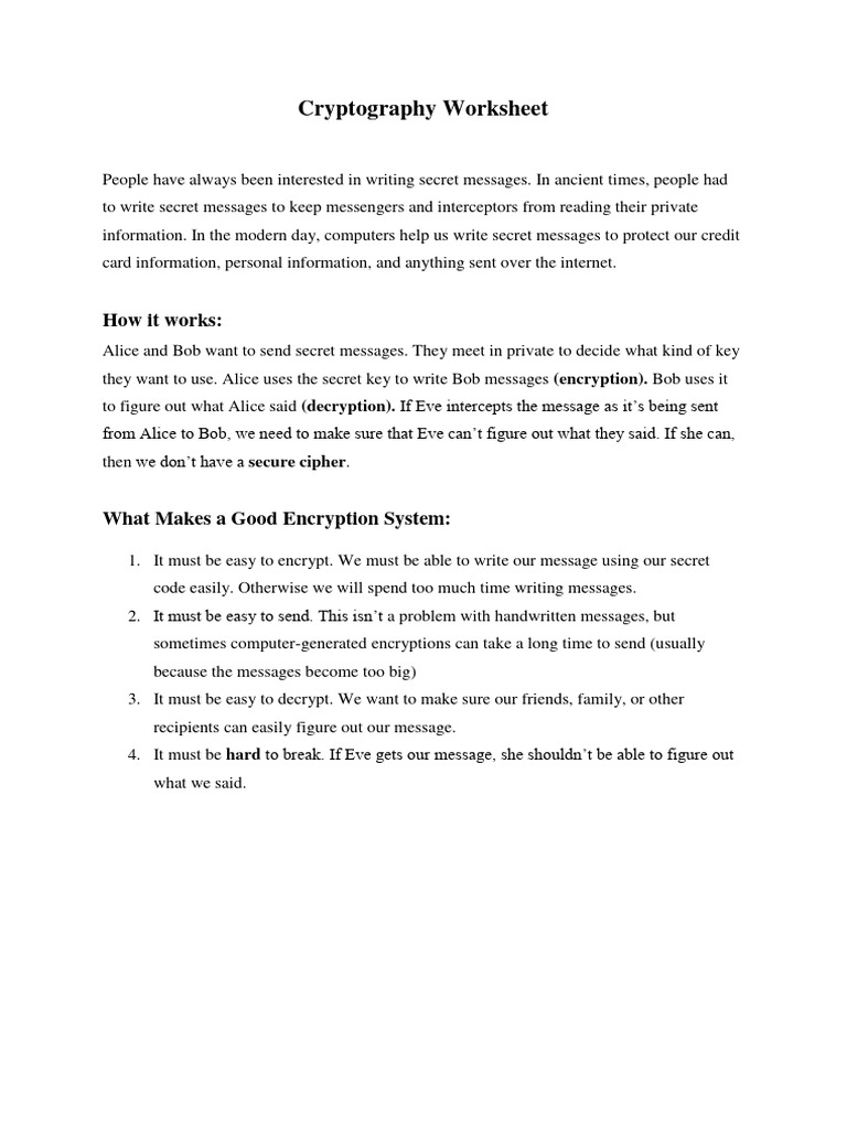 Cryptography Worksheet | PDF | Encryption | Cryptography