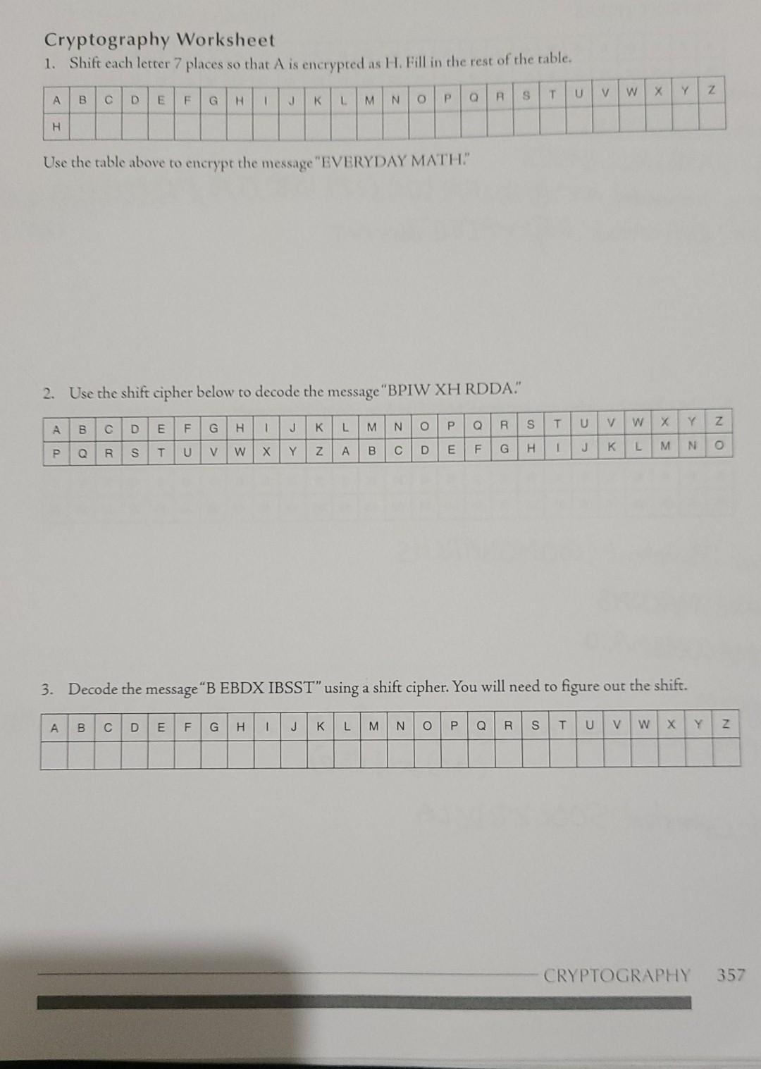 Solved Cryptography Worksheet 1. Shift each letter 7 places | Chegg.com