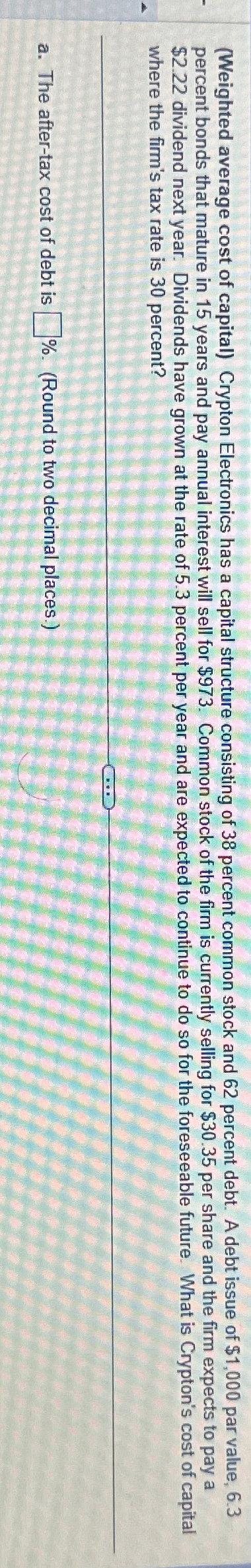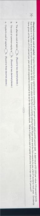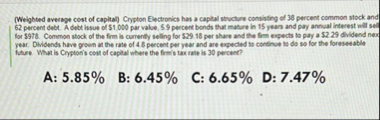 Solved Weighted average cost of capitan Crypton Dictions as | Chegg.com