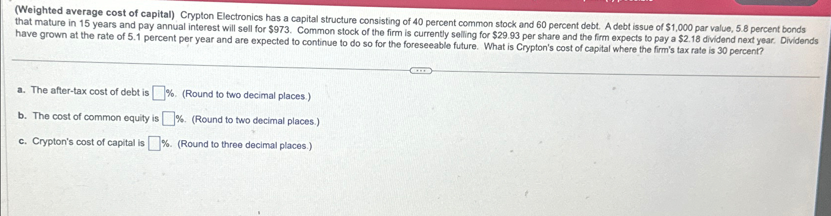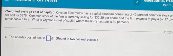 Solved (Weighted average cost of capital) - Crypton | Chegg.com