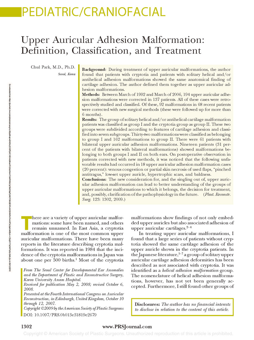 Considerations for the Management of Cryptotia Based on the Experience ...
