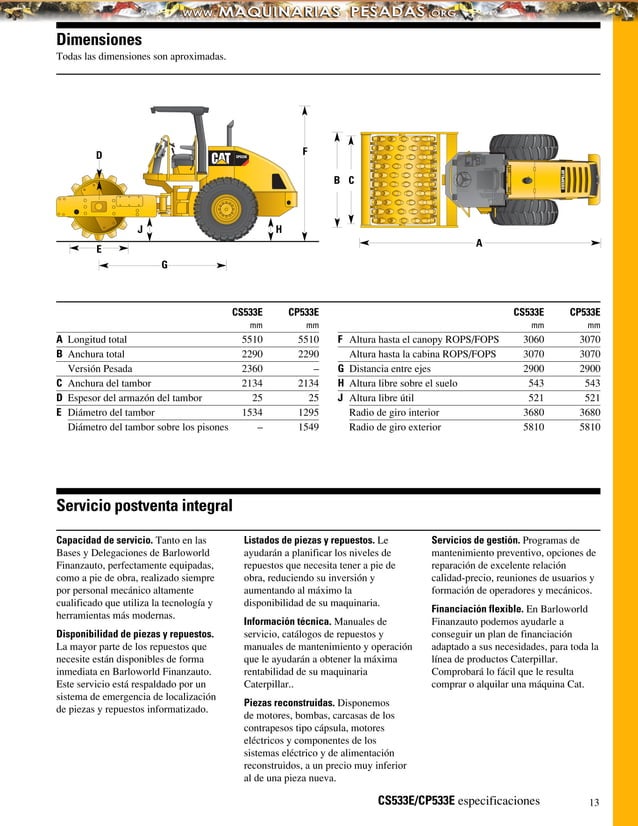 Ficha Técnica de Caterpillar CS533E. Aplanadora Vibratoria De Rodillos ...