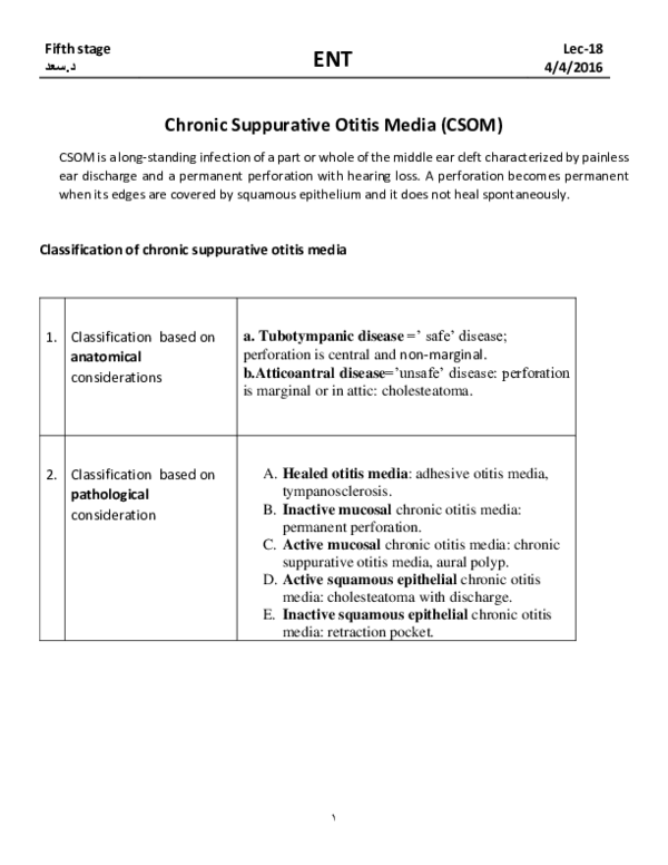 CSOM pathogenesis, clinical features, diagnosis | PDF | Clinical ...