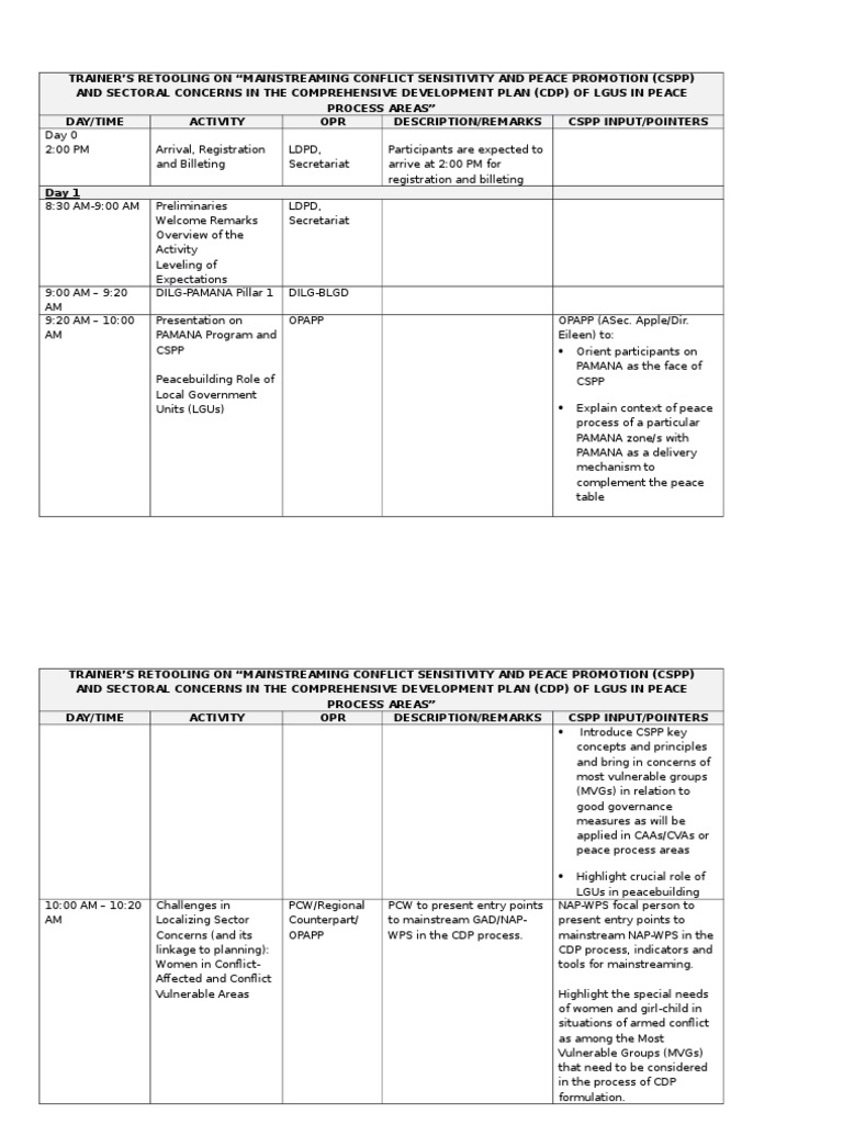 Provisional Program and CSPP Inputs To CDP Retooling in CNN Areas ...