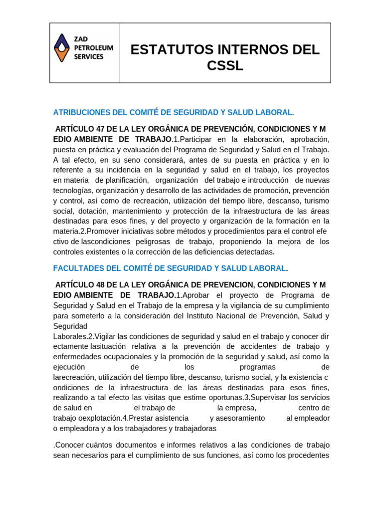ESTATUTOS INTERNOS DEL CSSL | PDF