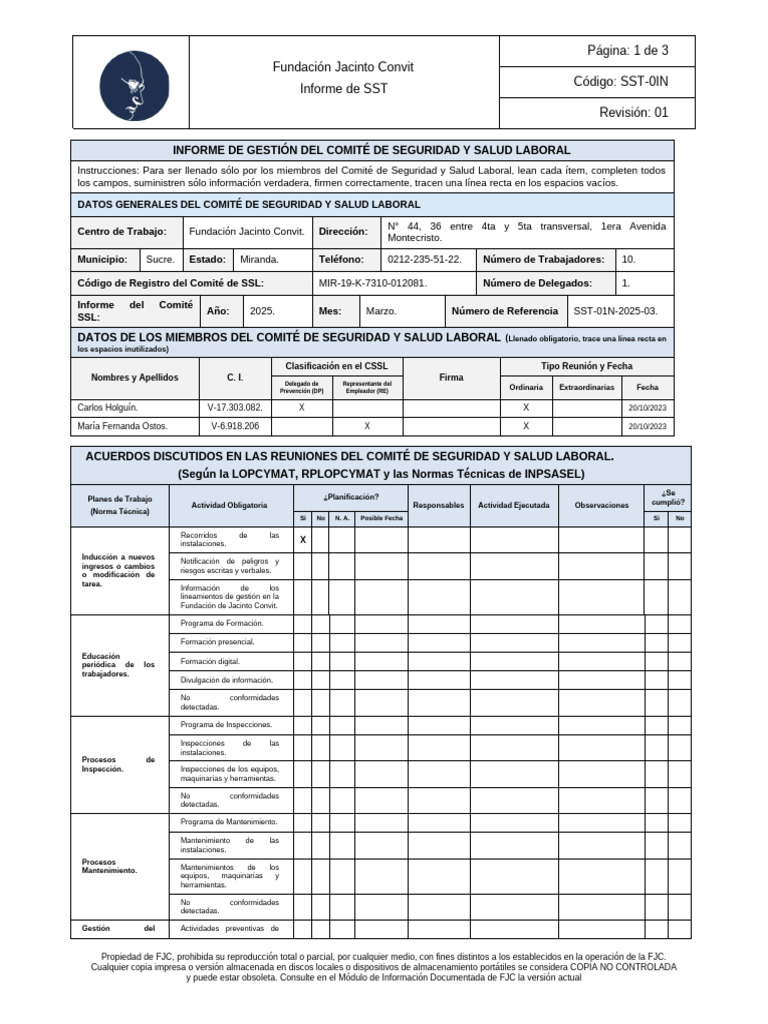 Informe Del CSSL 03-2025 | PDF | Vigilancia | Seguridad y salud ocupacional