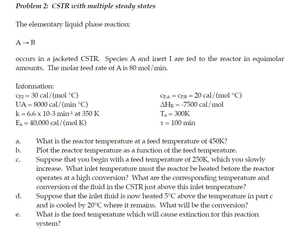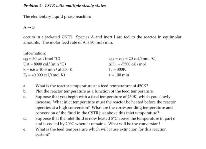 Solved Problem 2: CSTR with multiple steady states The | Chegg.com