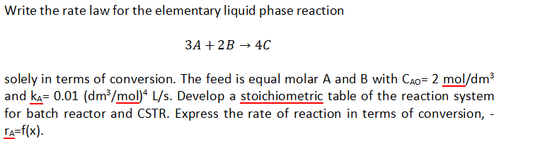 Solved Batch, PFR, & CSTR: Practice Problem 3 For the liquid | Chegg.com