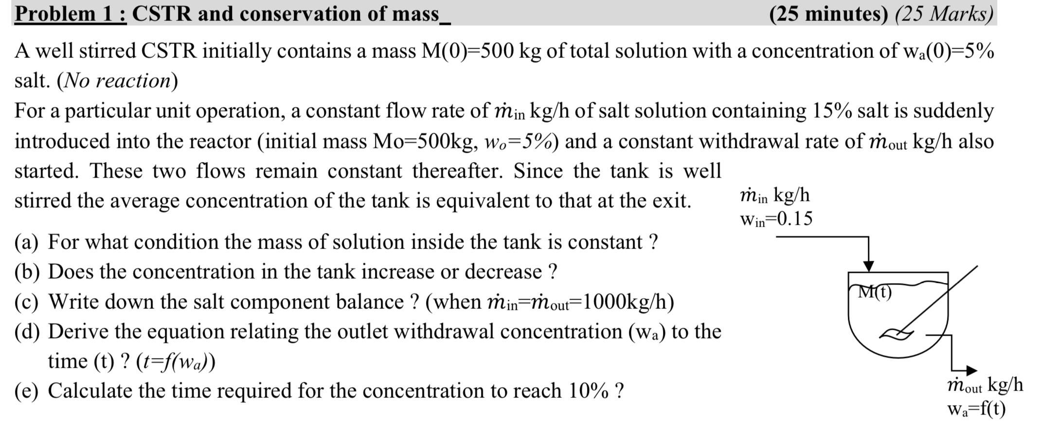 Solved Problem 1: CSTR and conservation of mass_ (25 | Chegg.com