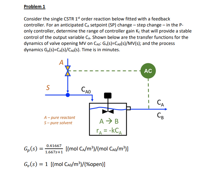 SOLVED: Q2: For the CSTR reactor shown in Figure 2, derive the transfer ...