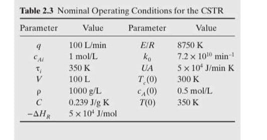 Problem 1. Dynamics of a CSTR Using a Numerical | Chegg.com