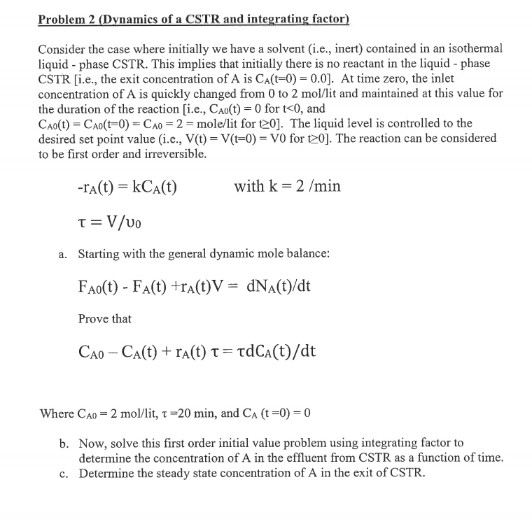 Solved Problem 2 (Dynamics of a CSTR and integrating factor) | Chegg.com