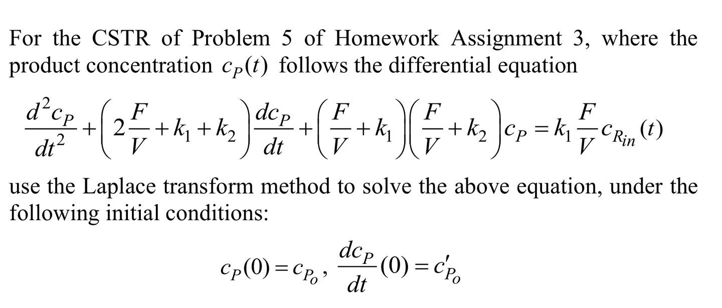 Solved For the CSTR of Problem 5 of Homework Assignment 3, | Chegg.com