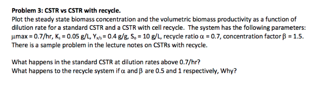 Solved Problem 3: CSTR vs CSTR with recycle. Plot the steady | Chegg.com