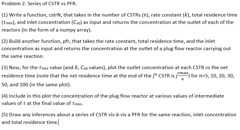 Problem 2. Series of CSTR vs PFR. (1) Write a | Chegg.com