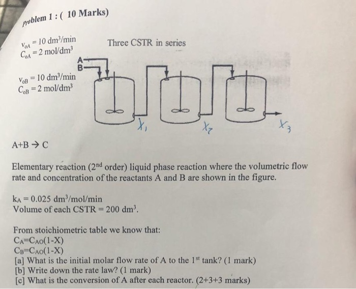 Solved problem 1: ( 10 Marks) Three CSTR in series VA = 10 | Chegg.com