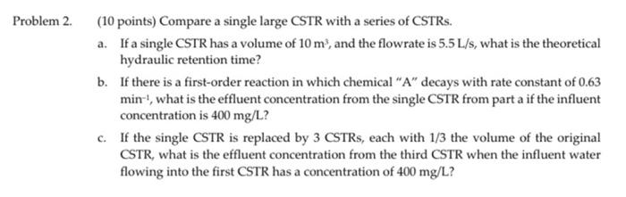 Solved Problem 2. (10 points) Compare a single large CSTR | Chegg.com