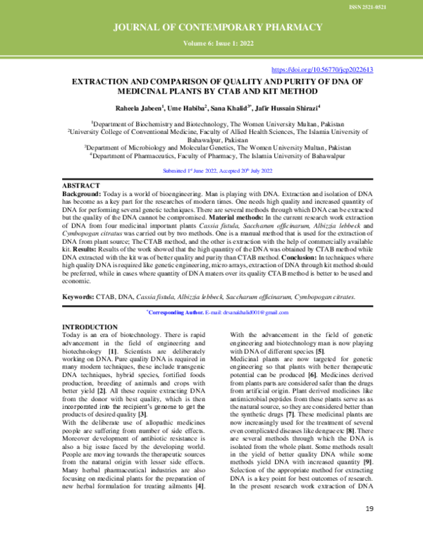 (PDF) Extraction of high-quality genomic DNA from different plant ...