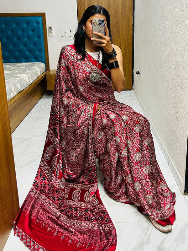 Soft Semi Gaji Ajrakh Saree – Where Art Meets Elegance - Style array