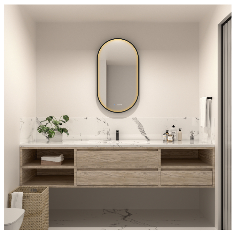 Oglinda baie 50x90 cm, dezaburire, ceas si iluminare perimetrala cu ...