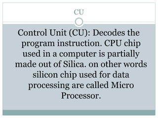 What is cpu in computer , Parts of CPU , ALU , CU , Memory Unit . - YouTube