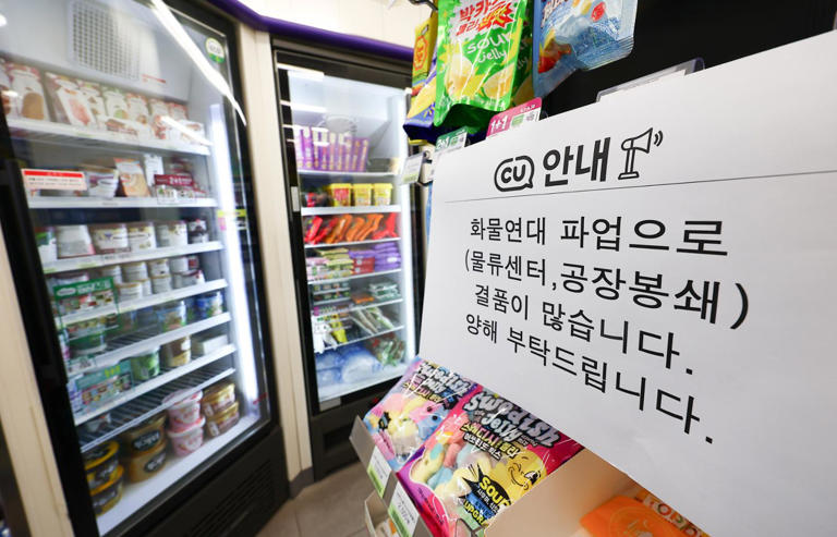 파업 때문에 저온이나 상온 물류가 늦거나 못온다고 합니다. - CU 편의점 마이너 갤러리