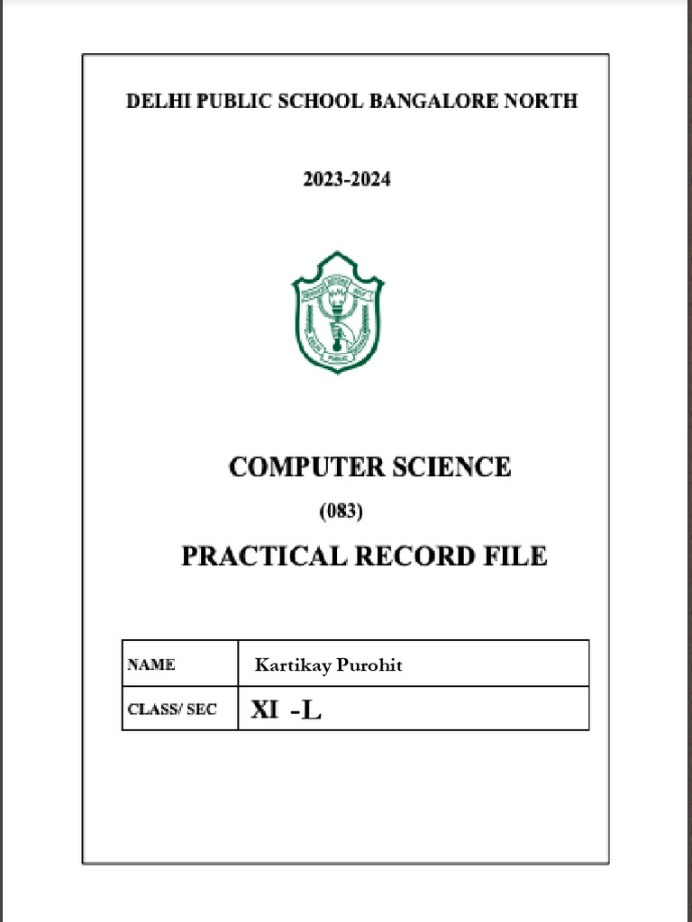 PRACTICAL FILE FRONT PAGE - 12th CS With Python | PDF