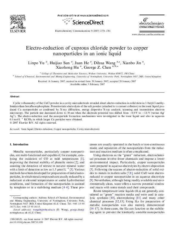 (PDF) Electro-reduction of cuprous chloride powder to copper ...