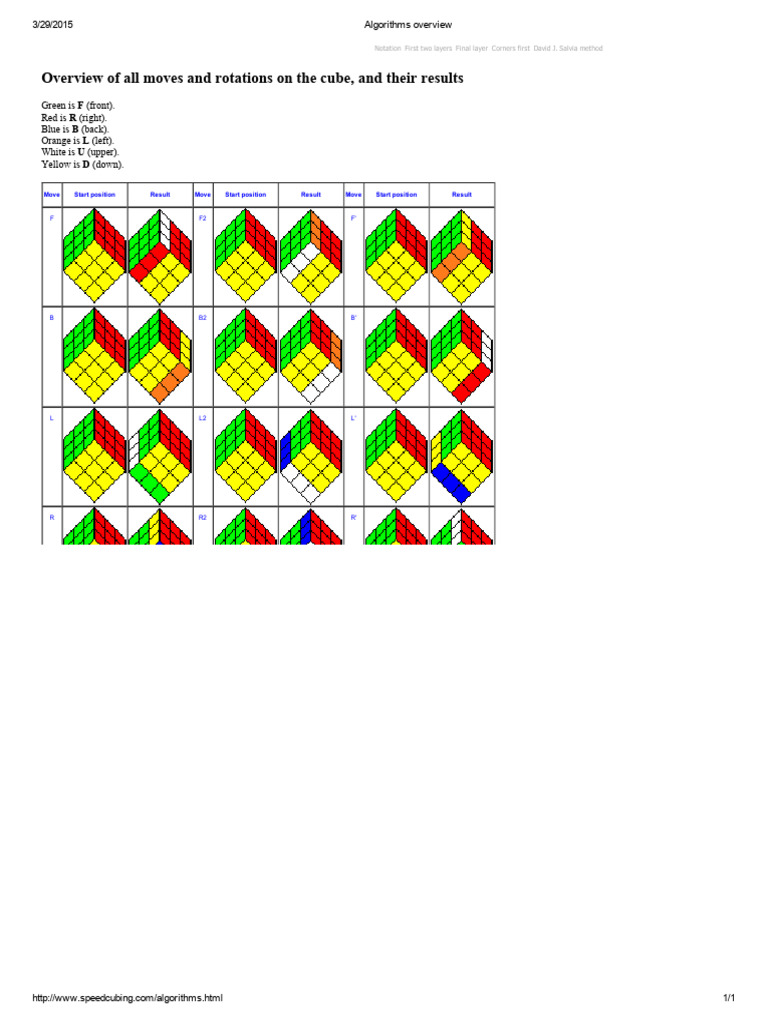 Rubiks Cube Algorithms Sheet How To Solve The Rubik's Cube Beginners