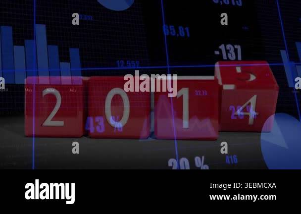 Animation of cubes with 2015 text and data processing on black ...
