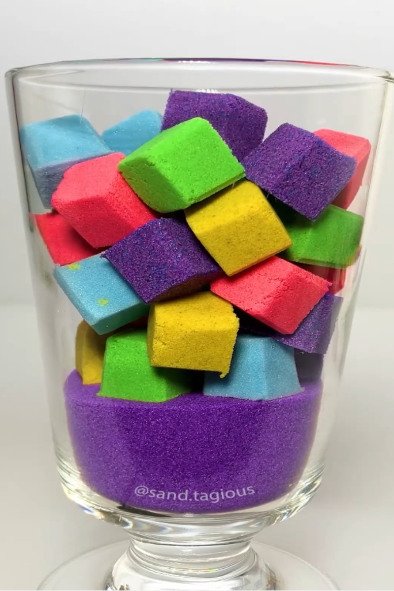 Colorful kinetic sand cube stack