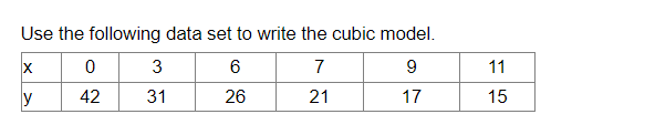 Solved Use the following data set to write the cubic model. | Chegg.com