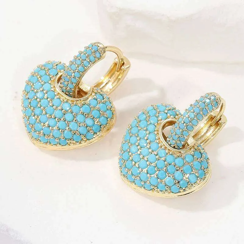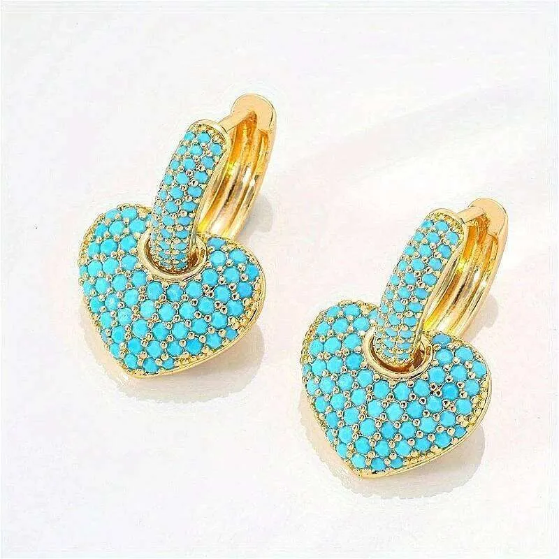 Heart Dangle Hoop Earrings for Women, 18K Gold Plated Copper with Black ...