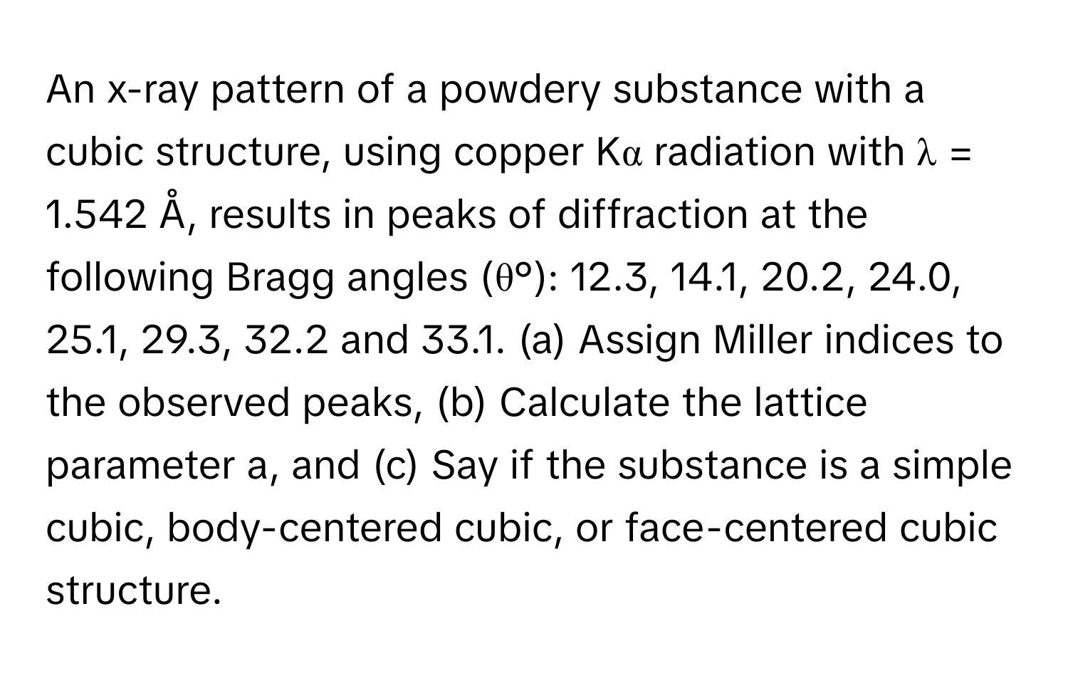 Solved: An x-ray pattern of a powdery substance with a cubic structure ...