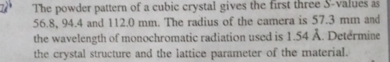Solved: The powder pattern of a cubic crystal gives the first three S ...
