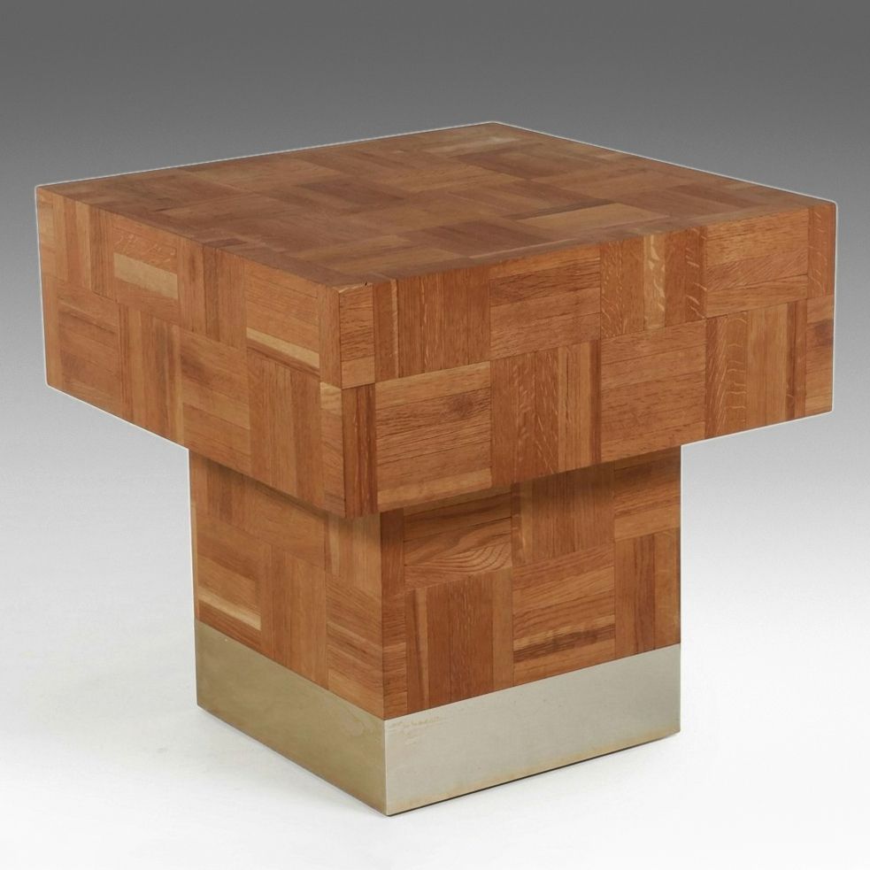 Brutalist Style Parquetry Oak Cube Pedestal Table, Late 20th Century | EBTH