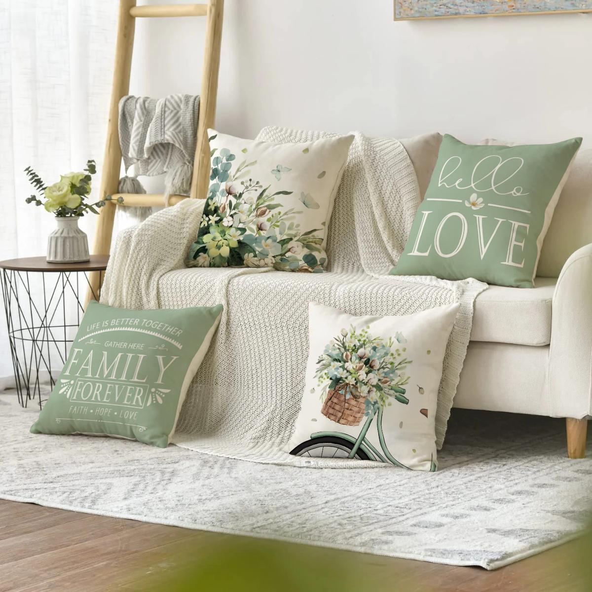 Floral & Letter Pattern Cushion Cover, 4 Counts/set Square Throw Pillow ...