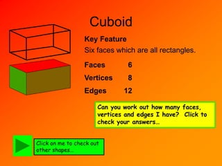 3D Shapes Cuboid Vertices| Edges| Faces| Geometric Shapes| Three ...