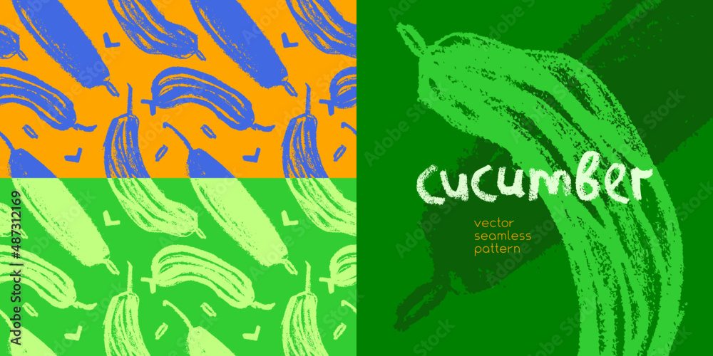 The seamless vector cucumber patterns | Food illustration art ...