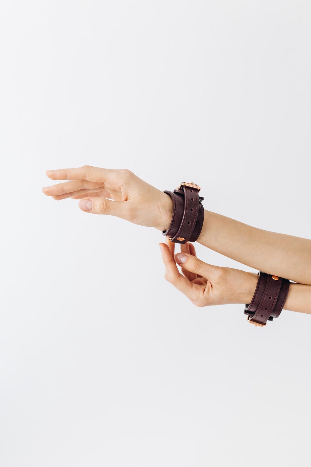 Handmade Bordo-black Leather Wrist Cuffs for Men and Women (792 Color ...